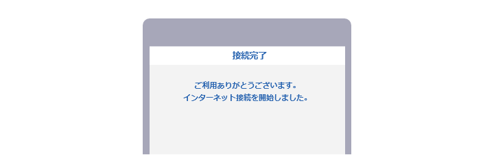 4. メーラーからブラウザが起動し、接続完了画面が表示されたらインターネット接続完了です。