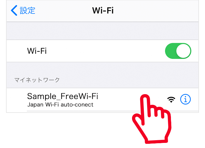 网络名称下面标记为“Japan Wi-Fi auto-connect”的是与应用程序相对应的Wi-Fi。