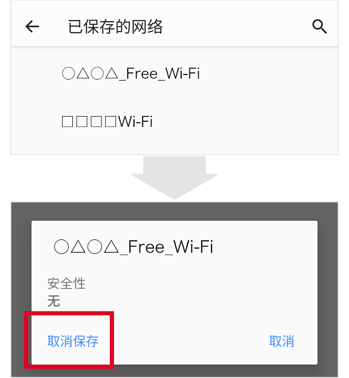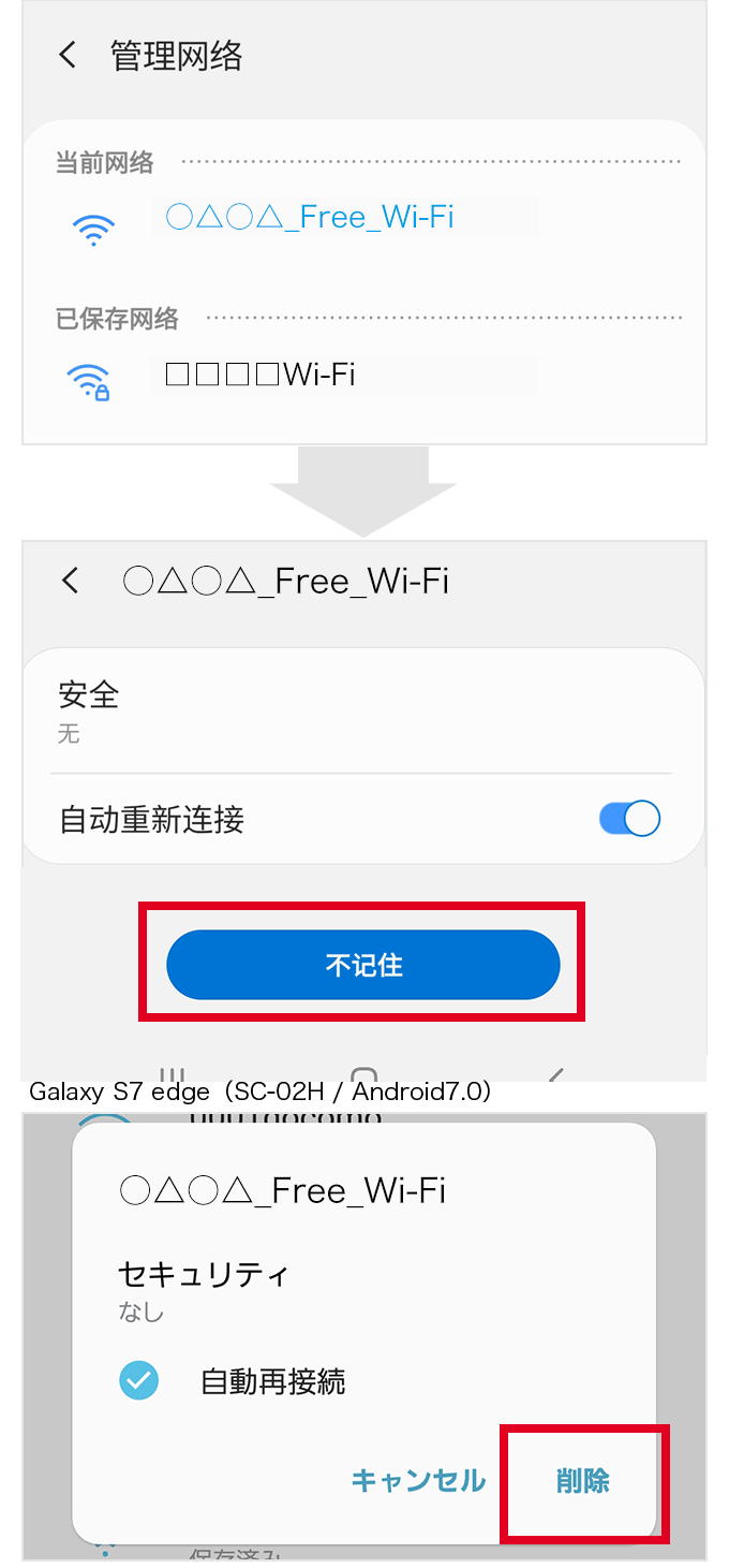 从“已保存的网络”中删除网络信息后,可以通过应用程序进行操作。