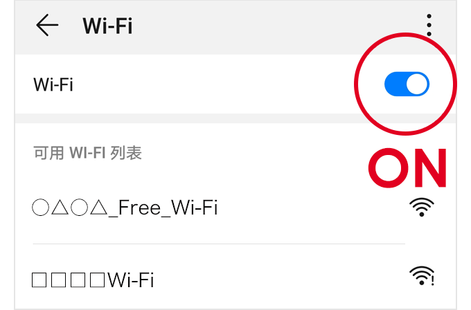 将“Wi-Fi”设置为“ON”,打开Wi-Fi界面