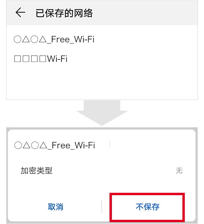 这种情况下,需要从“已保存的网络”等中删除网络信息后,再次操作应用程序。