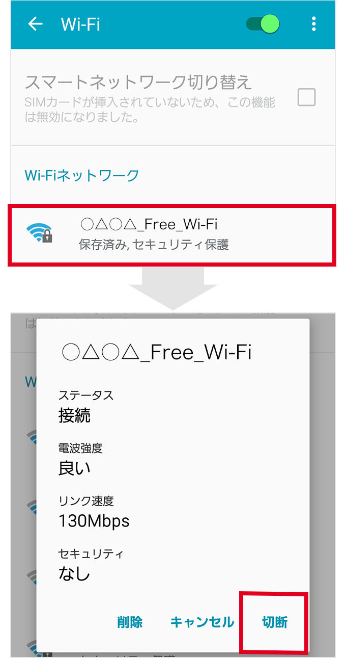 如果是支持Japan Wi-Fi- Auto-connect的网络,即使删除了该设置,只要在应用程序界面中将自动连接设置设置为“ON”,就可以再次进行自动连接,因此删除也没有问题。
