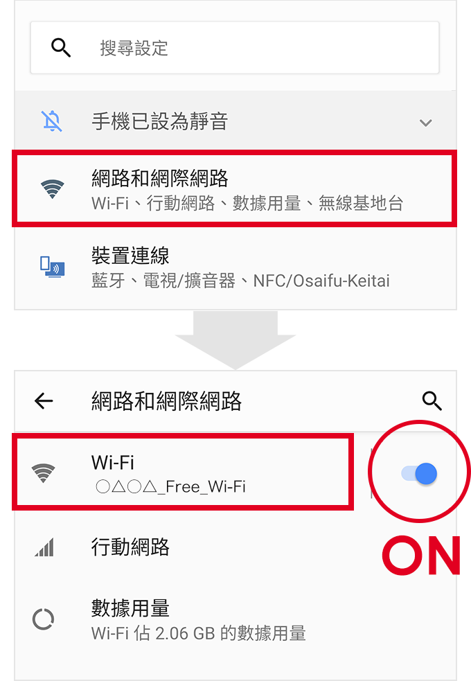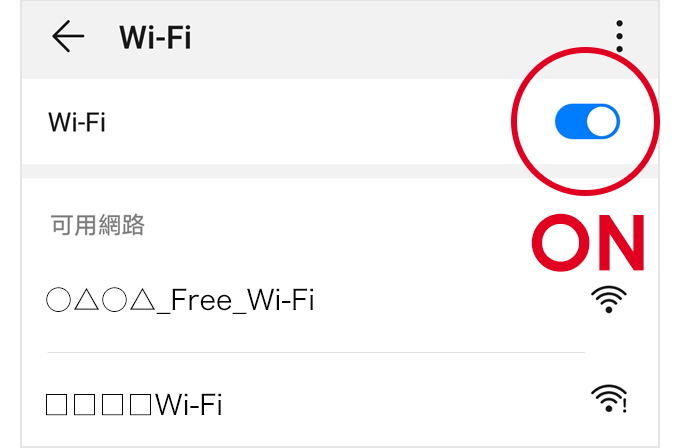 將「Wi-Fi」設定為「ON」