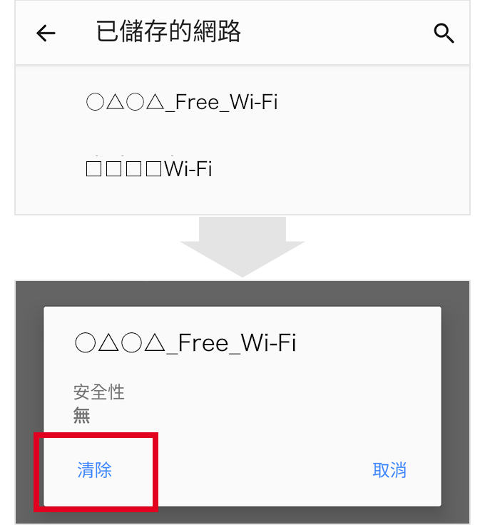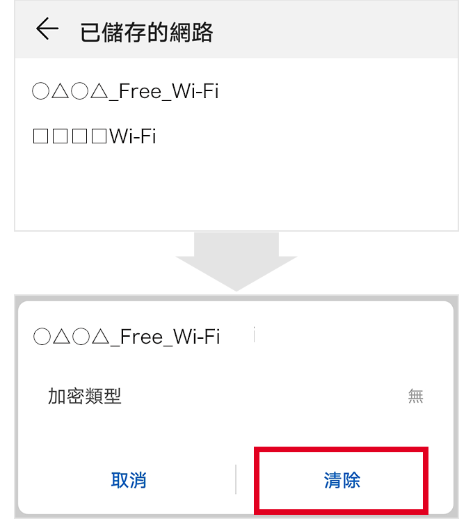 只要從「已儲存的網路」中刪除網路資訊後,即可透過應用程式進行操作。