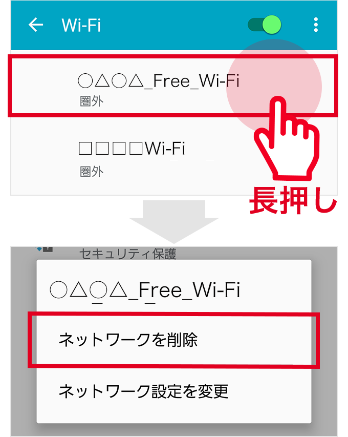 如果是支援Japan Wi-Fi- Auto-connect的網路,即使刪除了該設定,只要在應用程式畫面中將自動連接設定設定為「ON」,即可再次進行自動連接,因此刪除也無妨。