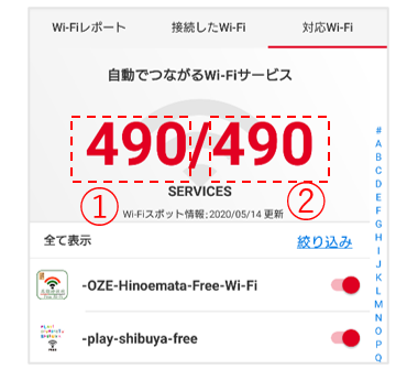 ②顯示可供Japan Wi-Fi auto-connect利用的Wi-Fi服務數目。