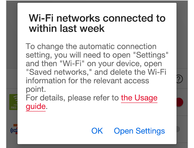 JIf the network supports Japan Wi-Fi Auto-connect, even if the setting is deleted, if you set Automatic connection settings on the app screen to ON, the network will automatically be reconnected, so it is safe to delete the network here.