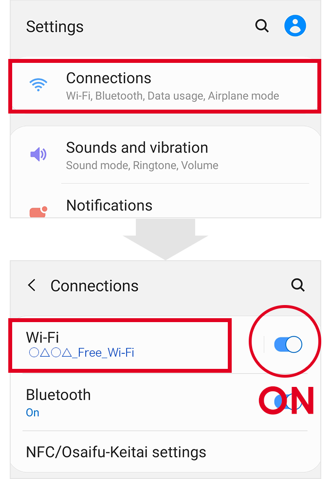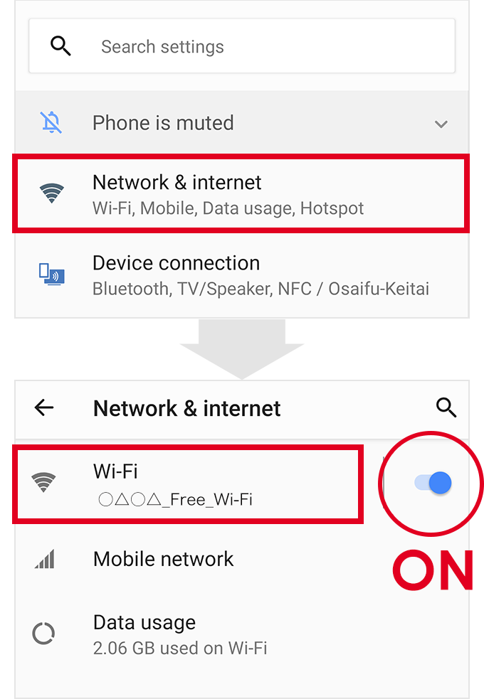 Set “Wi-Fi” to ON and open the Wi-Fi screen.