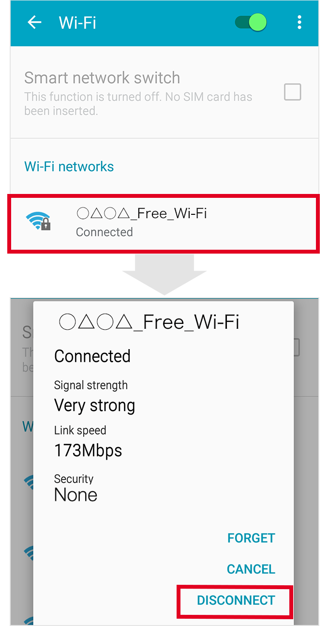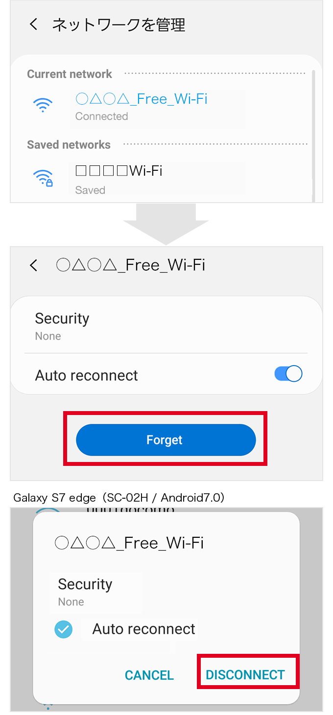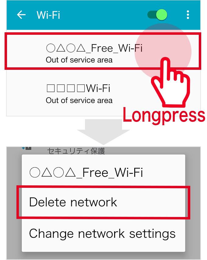 If the network supports Japan Wi-Fi Auto-connect, even if the setting is deleted, if you set Automatic connection settings on the app screen to ON, the network will automatically be reconnected, so it is safe to delete the network here.