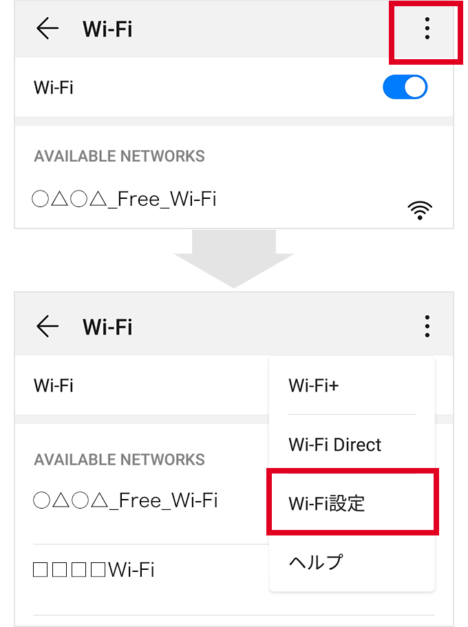 When the menu opens, tap "Wi-Fi settings.” (The menu might read “Wi-Fi detailed settings.”)