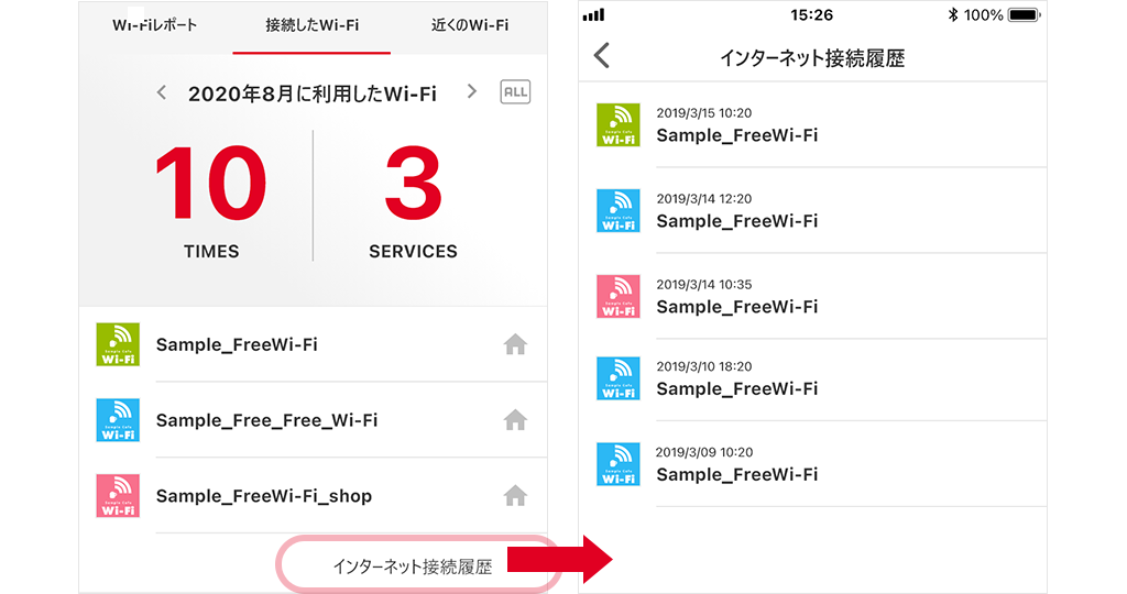The usage ratios of the Wi-Fi services you have used are displayed in ④. See if you can get your supported Wi-Fi service usage ratio to 100%!