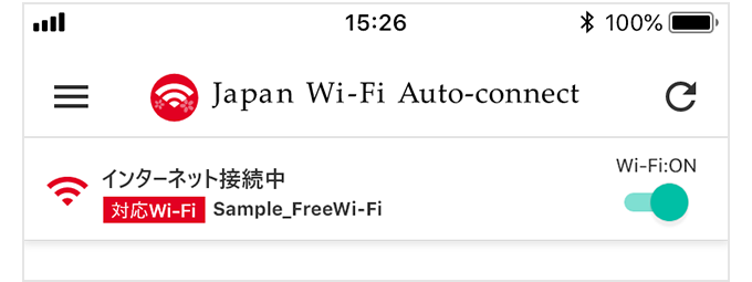 認証が完了するとアプリのトップ画面は「インターネット接続中」という表示に変わります。
