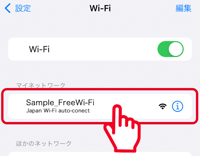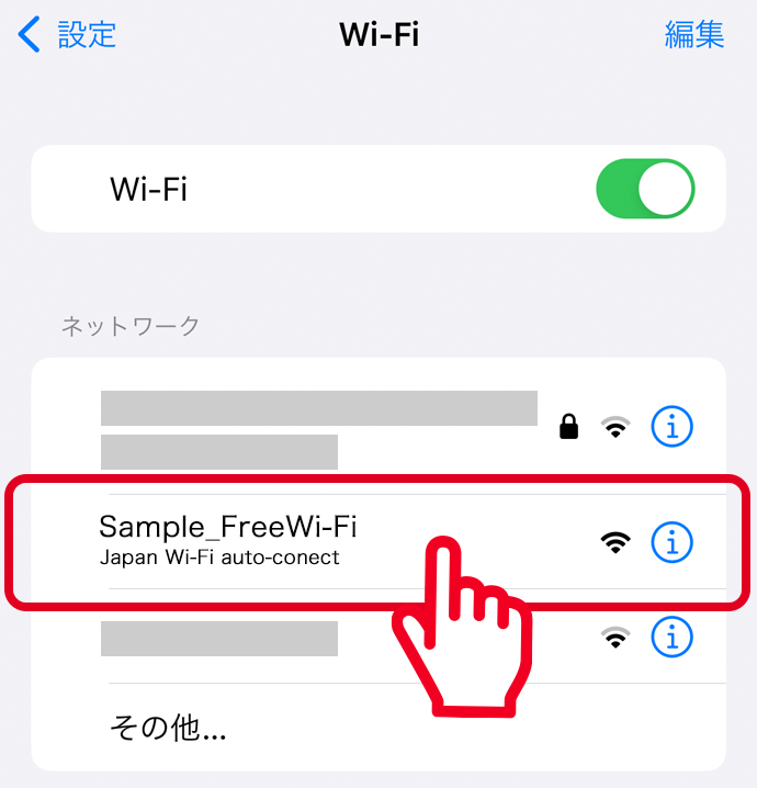 自動で接続しない場合は、「設定」画面の「Wi-Fi」から接続したいWi-Fiを手動でタップして、Wi-Fiに接続してください。