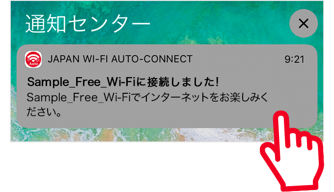 インターネットに接続できましたら、どのWi-Fiに接続したのかを通知でお知らせします。通知をタップすると、Wi-Fiスポットに関するWEBサイトが表示されます。Wi-Fi限定の情報もありますので、Wi-Fiに接続している間にぜひチェックしてくださいね。