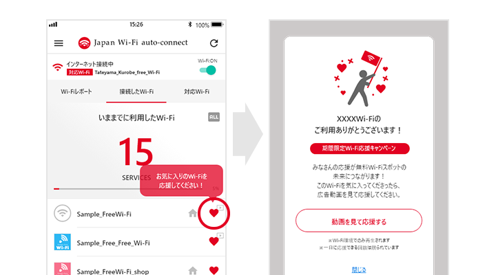これまでに利用したすべての対応Wi-Fiサービスを確認することもできるようになりましたので、100%目指してどんどん利用してくださいね!