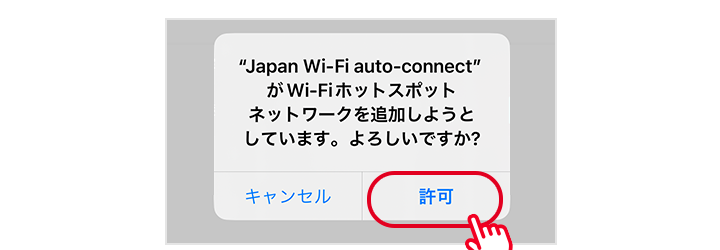 OpenRoaming対応スポットへの自動接続機能を利⽤するには、以下のダイアログで「OK」を選択する必要があります。