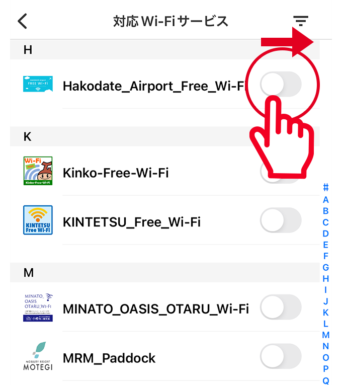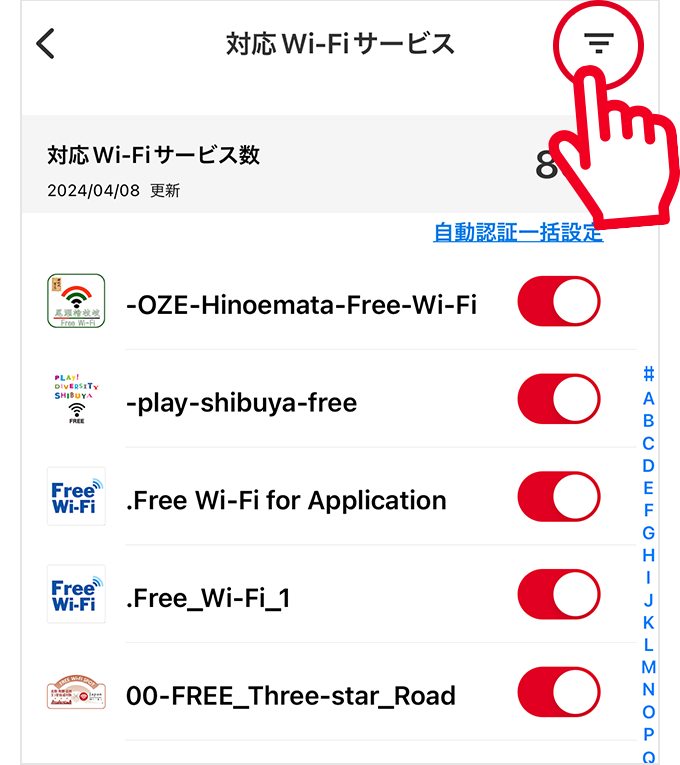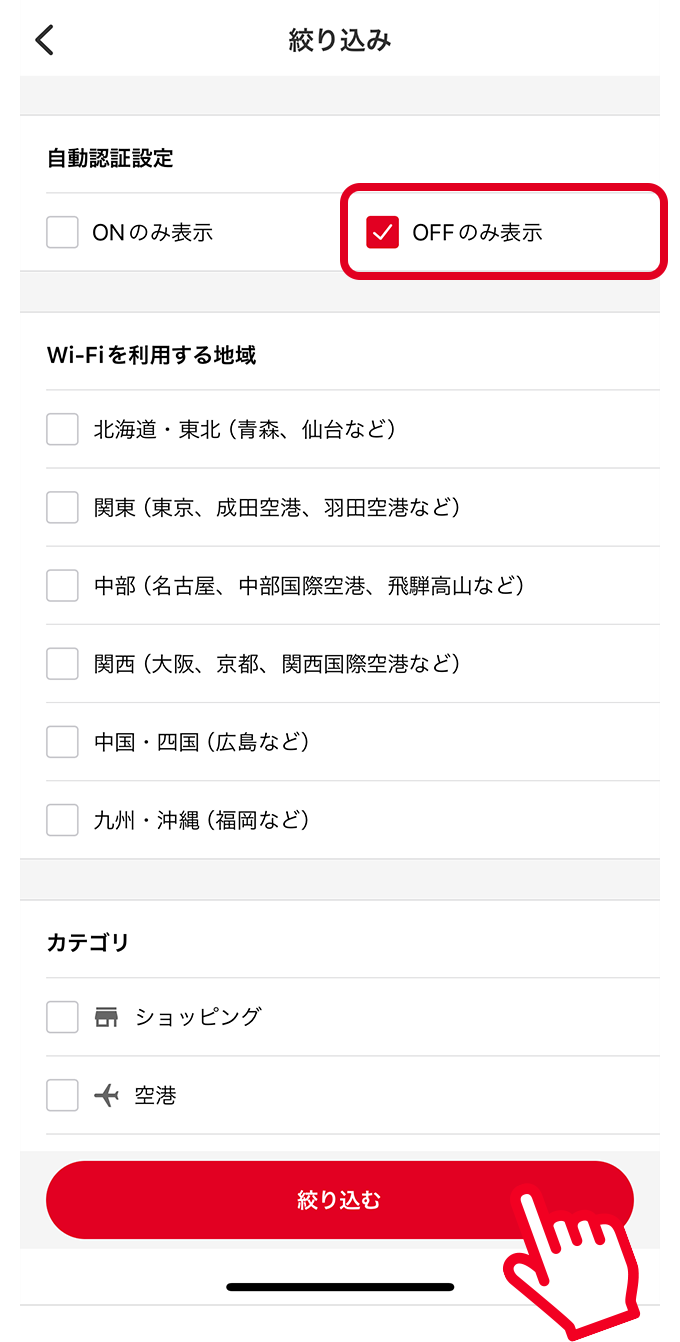 最新のエリアで利用するためには、アプリのWi-Fiスポット情報を更新する必要があります。