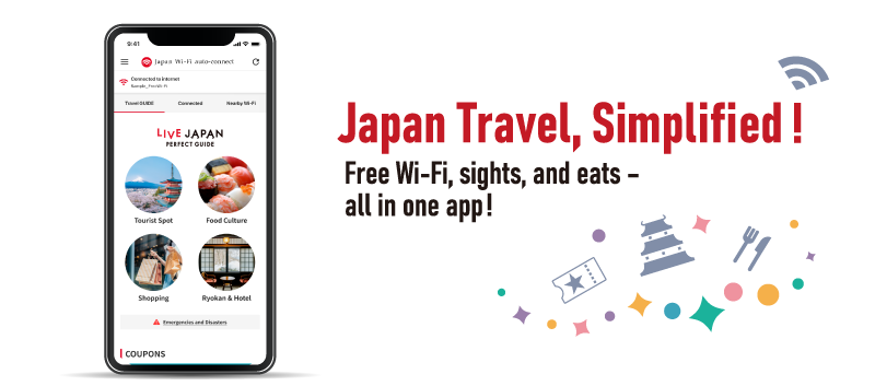これまでのフリーWi-Fi接続機能に加え、観光・グルメ・ショッピング・宿泊など、日本を楽しむための情報に簡単にアクセスできます!