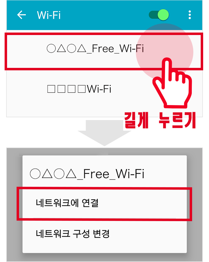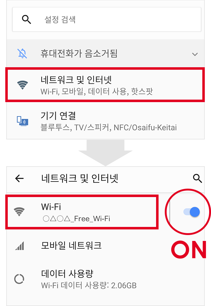 Wi-Fi 스팟에 있으실 경우에는 신호가 닿지 않는 장소로 이동한 뒤 조작해 주십시오.