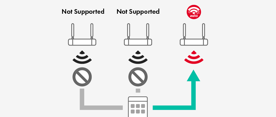 대응하지 않는 Wi-Fi에 먼저 접속한 경우에, 대응 Wi-Fi로 자동 변경되지 않게 됩니다.