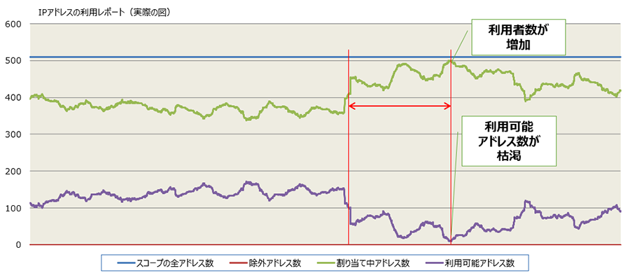 利用者数が同時利用できるIPアドレス数の上限を上回る時間帯があった