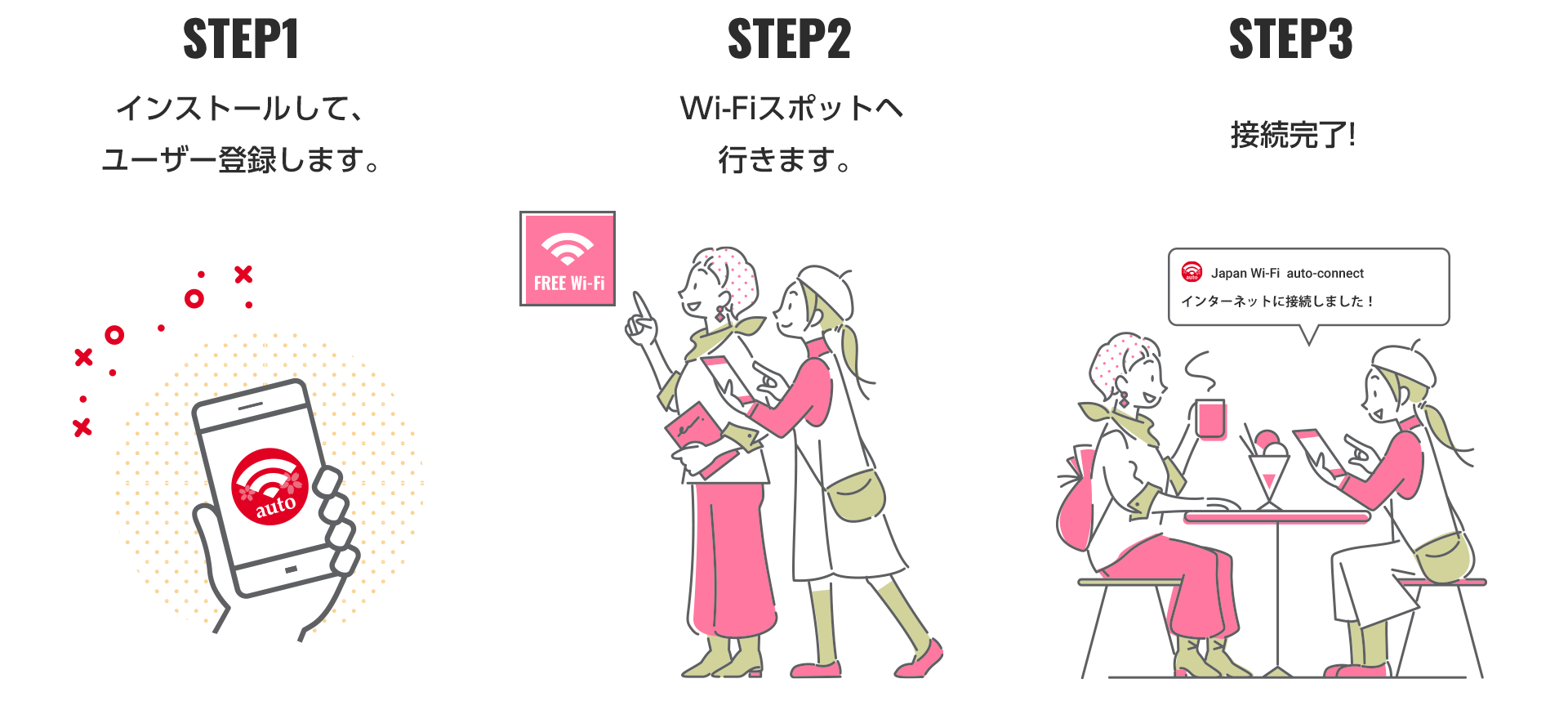 京都ポルタでは、自動でつながるアプリ「Japan Wi-Fi auto-connetct」の利用も呼びかけています。アプリユーザーであれば、利用登録手続きなしで、Wi-Fiエリアに入った時点でインターネットにつながります。京都ポルタではほぼ全館がWi-Fiエリアとなっているため、アプリを使うとさらに便利に利用することができます。