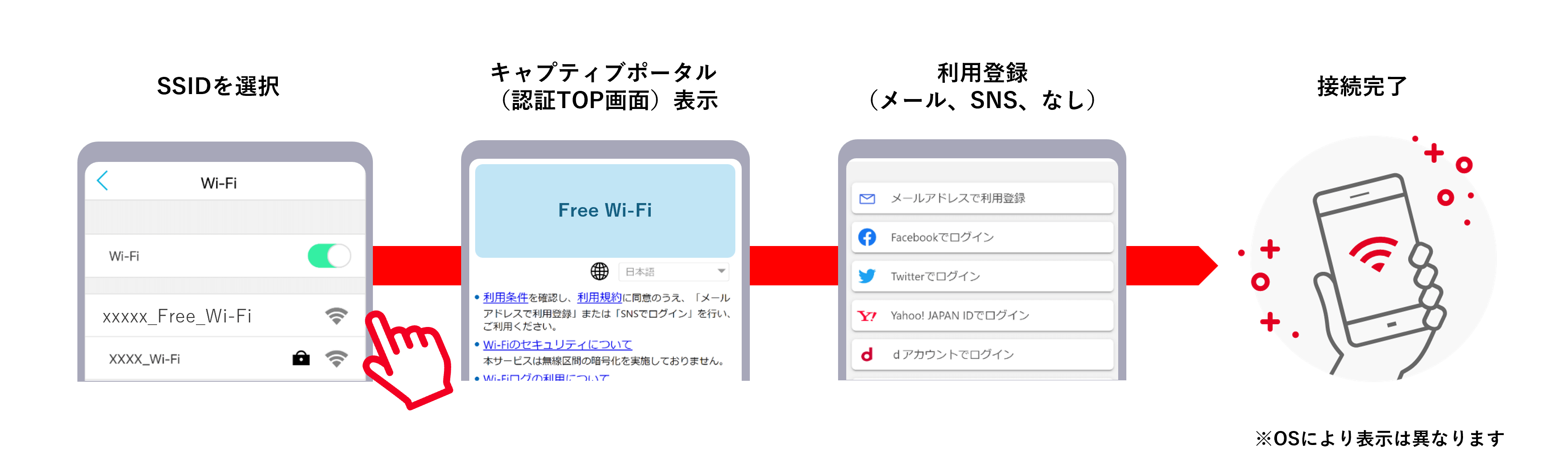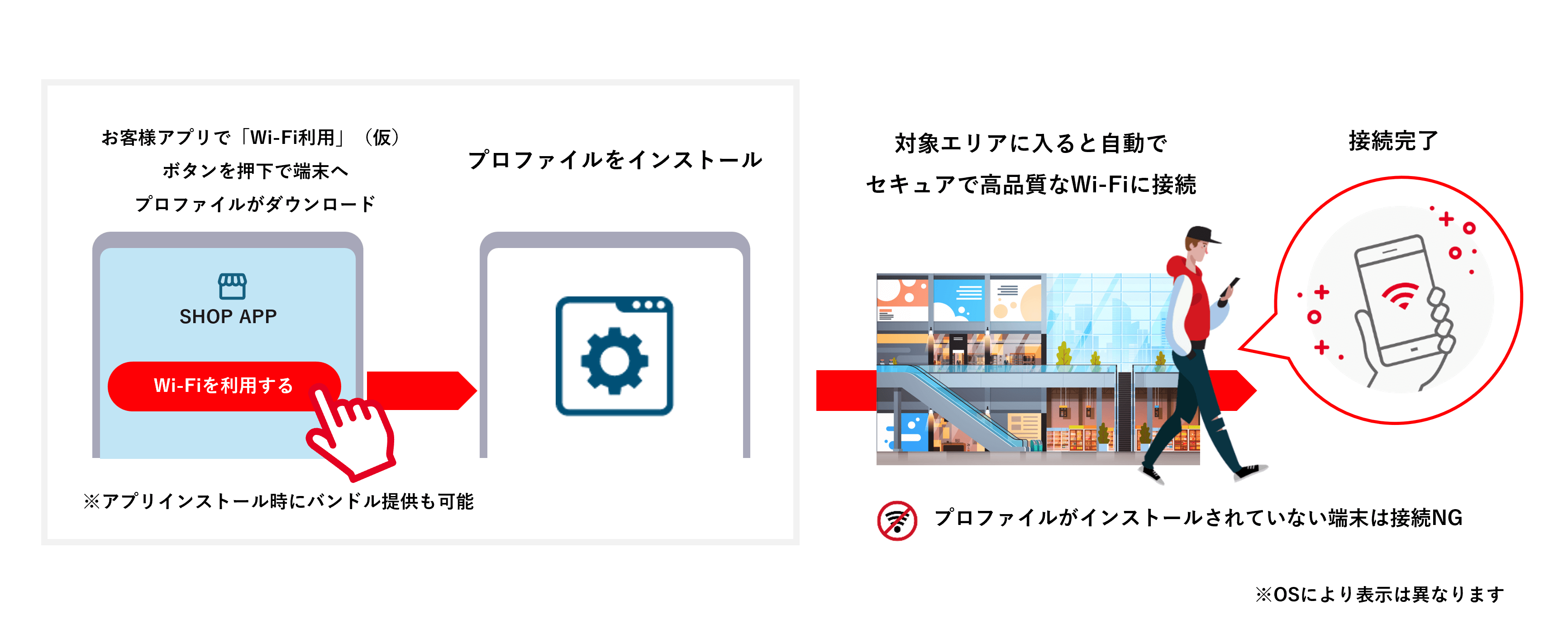 • Japan Wi-Fi auto-connectアプリを通じ、いずれの認証方式でもシームレスに接続可能