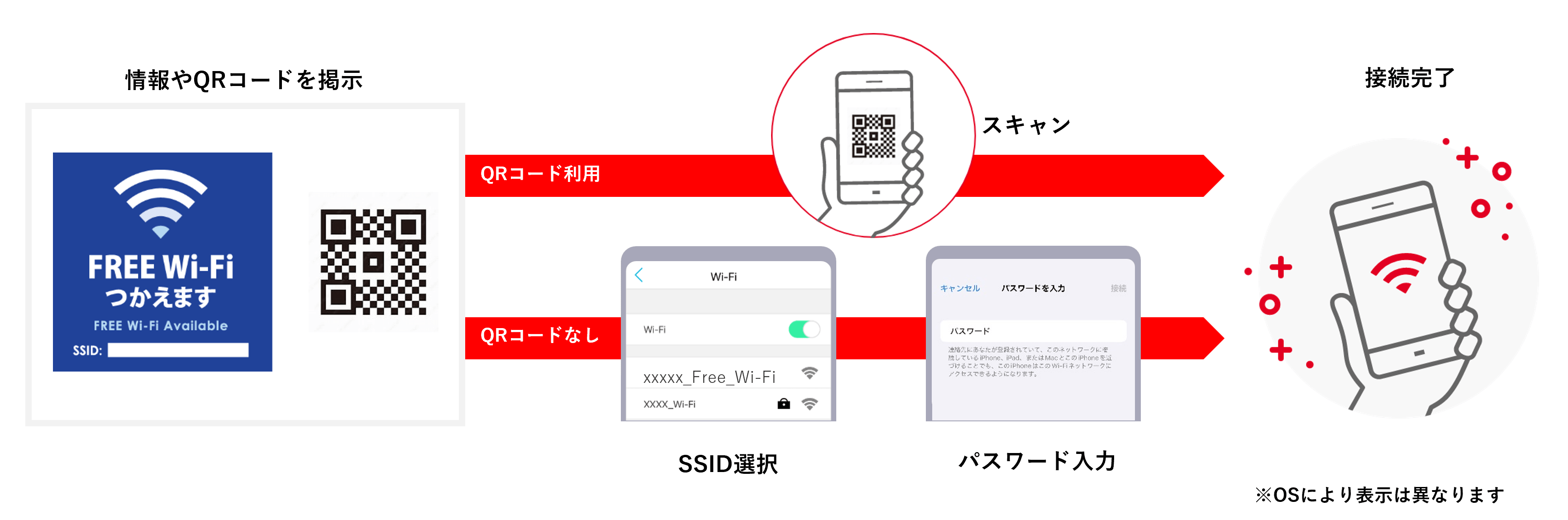 • 簡単操作で即時接続が可能なため、大規模イベントなどでもスムーズな利用体験を実現