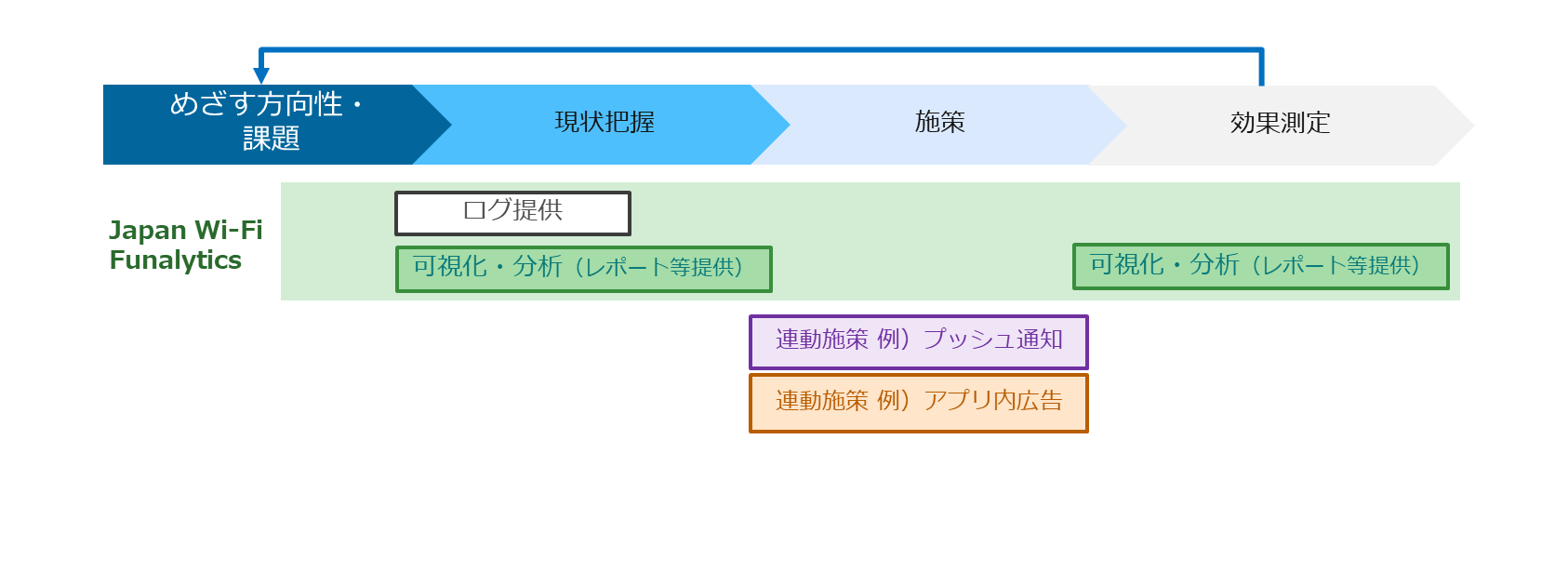 「Japan Wi-Fi FunalyticsTM(ファナリティクス)」は、訪日外国人旅行客の情報を含む、Japan Wi-Fi auto-connectの豊富なログを活用したデータ可視化・分析を行うサービスです。