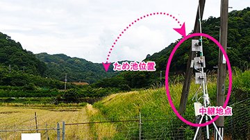 しかし、山中のため池の場合、携帯電話キャリアの通信網の範囲外地域であったり、光回線の設置場所から現場までの距離があることも少なくなくありません。
